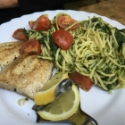 Gebratenes Zanderfielt mit Spaghetti in Spinatsauce und Tomaten hatte es in der Karte geheißen. Die Pasta präsentierte sich ordentlich, frischer Spinat und Tomaten waren da, auch waren die Nudeln nicht zu sehr gekocht. Das Zanderfielt war ganz schlicht gebraten worden. Meine Frau war deutlich glücklicher mit diesem Teller als einen Abend zuvor. Ich hätte auch Lust auf Fisch gehabt, und auch auf Pasta, aber ich war nicht so mutig und ging wieder den Weg der nicht so hohen Erwartungen.