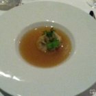 Dann kam eine Consommé mit Ravioli gefüllt mit Entenconfit. Serviert wurde diese Consommé aus einer Glaskaraffe (Ravioli wurde übergossen). Der Geschmack der Wildente kam sehr gut durch.