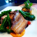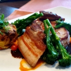 Fischsuppe mit Fenchel, Kirschtomaten und Aioli (7,50); Kräutersalat; Wolfsbarsch mit Süßkartoffelpüree, Safranjoghurt und Nizzagemüse (18,-); Schollenröllchen mit Scampi, grünem Spargel und Kartoffel-Karotten-Stampf (20,-). Zum nachtisch gabs 3 kleine Desserts im Glas: Mousse mit Zitronensahne, gebrannnte Creme; Panna Cotta mit Erdbeeren. Suppe und hauptspeisen, hielten genau das, was sie versprachen: sehr gut auf einander angestimmte Geschmacksrichtungen, der Fisch sehr zart und saftig, und auch die Suppe, die sehr herzhaft abgeschmeckt war, mundete prima. Die kleinen Desserts am Schluss waren von der menge her genau das, was grade noch so in den Magen gepasst hat. S ka man um das Dilemma, ein gutes, üppiges Dessert nachher doch nicht zu schaffen und onnte den Vorzug genießen, mehrere Geschmacksvarianten anzutesten. Und der Preis für das Glas war mit jeweils 3,- Euro sehr fair