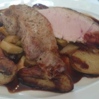 Weiter geht es bei meiner besseren Hälfte mit Lachs, welcher oben super knusprig gegart wurde, im Innern war er sensationell glasig und zerfiel auf der Gabel. Angerichtet mit schluchzendem Spargel Risotto und feinem Spinat. Der Spinat schmeckte famos, erstaunlich gute Qualität. Meine Frau kam ins Schwärmen ... Ich entschied mich für die Fleisch Alternative: Rücken vom Iberico Schwein, angerichtet mit Ofenkartoffeln und mediterranem Gemüse. Das Gemüse schmeckte "affengeil", leicht salzig, leicht ölig, leicht fruchtig. Abgerundet wurde das Gericht von einer reduzierten Sauce die perfekt zum Gericht gepasst hat. Als Begleitung wurde mit ein Spätburgunder von Knipser empfohlen, der passte wie "die Faust aufs Auge" und war ebenfalls mit 5,50 für 0,15 erfreulich fair kalkuliert.