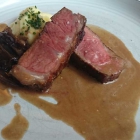 Couscous vom Blumenkohl und geschmorter Lammschulter. Fangen wir mit dem Gratin an. Das wurde perfekt vorab gegart, dann wohl in Würfelform ausgestochen, eingewickelt in einer längeren rohen Kartoffelfaden, das ganze wohl in brauner Butter ausgebacken. Beim Anschneiden knusperte das Gratin regelrecht, es fehlte nur noch die Hexe „wer knuspert denn an meinem Häuschen...“, dazu gesellte sich famos schmeckender Couscous vom Blumenkohl. Keine Ahnung wie der Blumenkohl die Couscous Kügelchenform bekommen hat, aber die Blätter wurden in Couscousform mit vermengt. Das ganze abgeschmeckt, hat es nach frisch gemähtem Rasen erinnert. Kein Witz, das schmeckte wirklich so, sogar mein Tischnachbar meinte, das schmeckt irgendwie nach frisch gemähtem Rasen. Mal was anderes. Das war großes Kino. Pech hatte ich mit dem geschmorten Lammfleisch. Was heißt Pech ? Wäre ich der Koch gewesen, hätte ich das nicht raus gegeben. Ich reklamierte das dann, aber meine Kritik stieß auf taube Ohren. Ich hatte 4/5 nur Fett und zerfetztes Schulterfleisch, welches an Knorpel erinnerte. Ich weiß nicht, ob das so sein muss. Mein Nachbar meinte auch“ziemlich viel Fett“, aber klar, die Schulter ist ja immer in Bewegung, dennoch, ein wenig mehr Fleisch wäre schön gewesen.