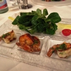 Ohne Küchengruß ging es gleich zur Sache. Warum soll man sich auch immer den Bauch mit Frühlingsquark und drei Sorten Brot vollschlagen bevor die kulinarischen Hauptakteure auf den Plan treten. Mein Start fiel erfreulich aromatisch aus. Auf einem in vier Segmente unterteilten Glasteller lagen genauso viele, herrlich nach Knoblauch, Kräuter und Elsassküche duftende Garnelenschwänze, die so gnadenlos lecker gewürzt waren, dass ich von ihnen locker die dreifache Menge verputzt hätte. Der begleitende Feldsalat erfüllte seine Rolle als säuerlich angemachter Nebendarsteller mit Bravour. Auch meine Begleitung lobte ihren mit ausgelassenem Speck und in Butter geschwenkten Croutons verfeinerten Rapunzelsalat. Der Start war geglückt, wir waren gespannt auf unsere Hauptspeisen.