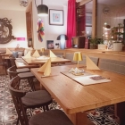 Der gut gelaunte, charmante, selbstbewusste Service zeichnet sich durch gleichbleibendes Standing und Freundlichkeit aus, auch wenn es umtreibig wird. Neben der gedruckten Speisekarte werden uns noch Tagesspezialitäten auf einer kleinen Schiefertafel annonciert. Gute Idee – davon nehmen wir gleich mal die frische Schwarzwurst. Ausserdem noch geschmorte Ochsenbacken mit Spätzle und Salat, sowie den Lemberger von Drautz-Able aus Heilbronn, einem unserer Lieblingsweingüter. Trotz vollem Haus werden wir rasch und aufmerksam umsorgt.