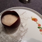 Inhaltlich dominierte feiner Vanilleschaum in dunkler Valrhona-Schokolade. Dazu sehr sparsam dosiert Pfirsich und Mascarpone. Lecker, klar. Nur 2 Sterne hab ich da nicht erkannt.