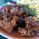 Meine Gattin bestellte ebenfalls das Wildragout mit Spätzle und Salat (18,90 Euro), das als lange geschmortes Schwarzkittelgulasch im Grunde keines Messers bedurfte, um es zu verzehren. Es fiel derart mürbe aus, dass es förmlich auf der Zunge zerging.
