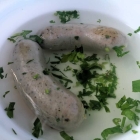 Es war das erste Mal, dass mir Wildfleisch in einem blassen Brätling unter Messer und Gabel kam. Die im Petersilienwasserbad servierten Würste schmeckten etwas kräftiger als ihre bleichen Artverwandten und hatten zudem ein tolles Kräuteraroma.