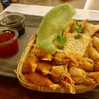 Und so erspähte ich einen Salat, der einige Fragen aufwarf. Zum Beispiel, wo das angekündigte Brotsegel geblieben war (Vermutlich nicht vorbereitet...). Oder, warum ich keine Sardellen fand; ein wesentlicher geschmacklicher Bestandteil. Und, nur so ganz am Rande: WAS MACHEN TOMATEN IM CAESAR’S SALAD? Überflüssig zu erwähnen, dass die Ware weitgehend geschmacklos war, was eigentlich überrascht, denn es gibt ja durchaus schon einige Züchtungen, die auch am Ende des Winters zumindest mit Süße punkten können. Das Schicksal der geschmacklichen Bedeutungslosigkeit teilten die Tomaten mit reichlich Grana Padano-Spänen. Gut, es war nicht alles schlecht: Der Römersalat frisch geschnitten und nicht in Soße ertränkt. Auch die knusprigen, nicht harten Croûtons gefielen.