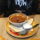 Beim Chili gab es zwei Baguette Scheiben mit dazu die noch leicht warm und etwas angeröstet waren. Einfaches helles Baguette, nichts besonderes. Dazu gab es auch die gleiche Sour Cream wie beim anderen Gericht. Das Chili war allerdings nur lauwarm. Geschmacklich fein abgestimmt, dezente schärfe mit dabei und schön würzig. Die Kidney Bohnen noch mit leichten Biss, nicht verkocht und der Mais mit guten Geschmack, nicht so Dosenmäßig.