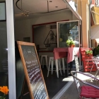 Es ist nicht sehr groß. Vorm Lokal gibt es auf dem Gehweg ein paar Tische mit Alustühlen dazu und roten Sitzkissen