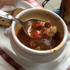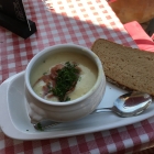 Wir hatten die Gulaschsuppe 100 % Rind in klein für 6,90 € und Kartoffelsuppe vegetarisch für 5,70 € und dazu extra Wienerle für 1,20 €