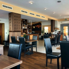 Dazu kommt eine für ein solches Restaurant gelungene, geschmackvolle Inneneinrichtung mit netten Details wie den momentan unvermeidlichen Retro-Edison-Glühbirnen und einem angenehmen Farbkonzept mit Holz- und Leder-Elementen.