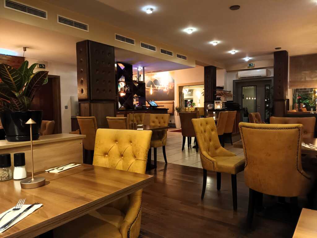 Das Interieur des Restaurants konterkariert auf überaus erfreuliche Art und Weise das klischeebeladene Außenbild. Zunächst möchte ich betonen, wie gut die Luft im Gastraum ist, Essensgerüche sind kaum wahrzunehmen und ich denke, wir alle wissen, wie die Garderobe nach dem Besuch eines echten „Old-School-Griechen“ riechen kann, selbst wenn man nur 20 Nanosekunden vor Ort war.