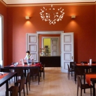 Wirkt sehr edel mit seinen schwarzen Stühlen ,rot bemalten Wänden,weißen Stofftischdecken und roten Servietten.