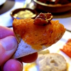 Das Brot belanglos in jeder Hinsicht, aber ich hatte Hunger und freute mich auf den Dip, der sah nach einer reichhaltigen Aioli aus. Aber auch nicht wirklich, ich roch daran und aha, Curry Mayonnaise, seufz…