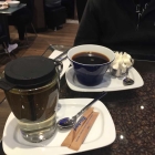 Das Haferl Kaffee war ohne crema , allerdings nicht mehr ganz so warm. Wir sind schwarz Trinker und brauchen somit keine Milch rein. Was uns aber zu Rätseln aufgab ist wenn jemand den Kaffee mit Milch trinkt – hier gibt es nur aufgeschlagene Sahne dazu. Wir kennen im Bekanntenkreis jemand der hierüber nicht glücklich wäre. Der Tee war eine offene Variante in einem Sieb und hier war das Wasser kochend hei, ist für Tee nicht so ideal. Dazu gab es noch zwei Tütchen mit braunen Zucker