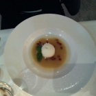 Eine Rinder-Consommé vom Tafelspitz (8,50€)für meine bessere Hälfte , mit Trüffelklößchen (3), viel zartem Rindfleisch (gewürfelt) und noch kleiner gewürfeltem Gemüsen (Karotte, Sellerie,Kohlrabi). Alles zusammen sehr gut kombiniert – für mich hätte die Consommé etwas mehr Geschmack haben dürfen. Ordentlich sage ich, sehr gut meine Frau.