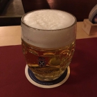 Die lederbehoste Kraft verrichtete ihren Dienst freundlich. Die Konversation beschränkte sich auf den notwendigen Informationsaustausch. Wie es sich für eine Brauereigaststätte gehört, kamen die beiden Biere schnell auf den Tisch. Aber auch die Suppe wurde postwendend nach der Order gebracht. Für einen Alleinesser, der sich allenfalls mit seinem Smartphone unterhält oder einen Mittagstisch geht das in Ordnung, in Begleitung am Abend fände ich das unpassend. Es überrascht nun nicht, dass die Küche auch mit der Hauptspeise nicht lange fackelte, so dass mein Rechnungsbon 19:56 Uhr auswies und vielleicht 40 Minuten seit der Einkehr vergangen waren.