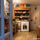Die Räumlichkeiten im Innenbereich sind nicht klein sondern winzig und müssen sich auch noch den Platz mit ihrem Feinkostgeschäft teilen. Beworben werden hier Aceti Balsamico Tradizionale aus Modena, Bio - Kaffee und Demeter Tee aus Südamerika und dem Himalajahochland, Fleur de Sel aus der Camargue und der Guerande, edelste Spirituosen und Eigenimport Olivenöl vom Gardasee und vieles mehr.