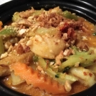Einer unserer Freunde leidet an einer Korianderunverträglichkeit, wollte aber die Indorollen als Vorspeise bestellen. Da diese Rollen nicht auf Vorrat produziert sondern nach der Bestellung immer frisch gerollt werden, war es kein Problem ihm korianderfreie Indorolls zu servieren. Auch hätte er gerne Reisnudeln als Beilage zu seinem Gericht gehabt; diese Nudeln sind aber normalerweise nur Bestandteil der diversen Pot au feu bzw. gehören ansonsten nur noch zu einer vegetarischen Platte. Für ihn wurde dann eben die vegetarische Platte durch Streifen vom Charolaisrind "aufgepeppt" (Aufpreis EUR 3,00 für vier schöne Rindfleischstreifen).