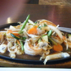 Mein Hauptgericht bestand aus acht grossen Garnelen auf einem Bett aus diversen Gemüsen und knusprigen Nudeln. Bei der Bestellung war ich darauf aufmerksam gemacht worden, dass es sich bei den Nudeln nicht um gebratene sondern um frittierte Nudeln handeln würde. Und in der Tat, sie waren richtig "crunchy" so etwa in der Art von Popcorn. Man muss sie mögen oder auch nicht. Ich mochte sie (obwohl mir gebratene Nudeln schlussendlich schon lieber gewesen wären), sie waren allerdings in der Handhabung etwas schwierig. Jedesmal wenn ich ein mit Soße behaftetes Bündelchen davon mit Löffel oder Gabel zum Munde führen wollte, fürchtete ich um mein weisses Poloshirt; es blieb Gottseidank spritzerfrei,ich habe mich nicht von oben bis unten eingesaut. Mit meiner Auswahl war ich wirklich zufrieden und vergebe gerne vier Sterne.