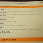 Mit "meiner" mir versehentlich einverleibten Vorspeise war ich sehr zufrieden, ebenfalls mit meinem Hauptgericht. In zwei getrennten Schalen-Sektoren hatte ich zum einen "knusprig" gegarte Entenbrust auf diversen Gemüsen in milder Soße und zum anderen große Garnelen auf gleichartigem Gemüsebett, hier allerdings mit gut scharfer Soße. Nichts zu meckern. Deshalb bewerte ich den Bereich "Essen" auch mit dreieinhalb Sternen, denn auch die Gerichte meiner Frau waren zumindest von der Küchenleistung her in Ordnung gewesen.