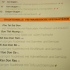 Wer hierher zum Essen kommt muß Zeit mitbringen, auch wenn nicht viel Betrieb ist ;-)) Wir hatten sie und wurden während wir auf das Essen warteten mit Oldies aus den Sechzigern und Siebzigern in angenehmer Lautstärke beschallt. Das Saigon Export , natürlich aus der Flasche, hat 4,9% Vol. und schmeckt sehr angenehm, selbst aus einem Bitburger-Glas. Als Küchengruß kam eine kleine Platte mit Bambussprossen, einem Stück Zitrone zum Darüberträufeln sowie kleingehackten "roten Teufelchen", von denen ich ein Stückchen probiert habe. Heissa, da geht aber wirklich brachial die Post ab! Wer Schärfe nicht gut ab kann sollte sich hier auf die Sprossen beschränken. Die Nem sprich Frühlingsrollen schmeckten, unterstützt von der Fischsoße, wie Nem schmecken sollen. Meine Ha Cao & Xiu Mai kamen in dem Körbchen, in dem sie auch gedämpft worden waren; sie lagen auf einem Korianderbettchen. Ha Cao sind Teigröllchen mit Garnelenfüllung und Xiu Mai Teigröllchen gefüllt mit Garnele und Hühnerfleisch; die mit der gemischten Füllung schmeckten mir eine Spur besser. Nahm man allerdings zu viel von der dunklern Soße dazu, schmeckte man ausser Soße nichts mehr; hier war Vorsicht geboten.