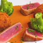 Die Melonensuppe war dezent abgeschmeckt und hzeigte typische fruchtige Noten. Durch den ausgelassenen Speck und die frischen Kräuter kamen als Kontrast salzige und feine Bittertöne dazu.