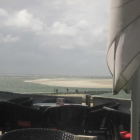 Wo andernorts auf der Insel der maritime Overkill herrscht, setzt man hier auf exotisches Südseeflair und aufgeweckt bunte Farben. Sogar auf dem Kassenbon sind Blümchen aufgedruckt. An Ria´s kommt man kaum vorbei, denn das außen weiß getünchte Lokal hat ganzjährig geöffnet, von 10 Uhr morgens bis mindestens 22 Uhr (dann schliesst die Küche), manchmal sicherlich auch bis später. Ich kann mir gut vorstellen, dass man hier abends sehr schön bei einem Drink auf der Terrasse sitzen und den Sonnenuntergang geniessen kann. Ende April ist das leider noch nicht möglich – sogar tagsüber pfeift der Wind so gnadenlos, dass ich am frühen Nachmittag zum Aufwärmen ins Lokal flüchte. Das helle, ebenerdig liegende Lokal ist lichtdurchflutet. Quietschgrün leuchten die Wände und die Bezüge der Sitzmöbel, zwischendrin sprosst exotisches Grün, ein sorgsam gefliester Kachelboden samt quer verlegtem Laminat sorgt für Bodenständigkeit. An der langen Bar kann man auf weissen Barhockern mit Zebrabezügen sitzen. Im Eingangsbereich steht ein ausgeschlachtetes Auto. Hier hat der Innenausstatter Mut bekannt!