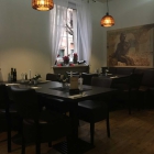 Das Restaurant ist in einem Endhaus untergebracht, was ihm zwei Fensterfronten verschafft. Es ist ein kleines Restaurant und die Einrichtung trägt den Stempel der aktuellen Raumausstattung von Restaurants mit Braun als dominantem Farbton (Lederbänke und –stühle, Tische, Holzoptik des Fußbodens). Großflächiger Wandschmuck ist sparsam platziert und die hübschen Deckenlampen mit ihrem Stoffbezug spenden warmes Licht. Auch wenn man den Einheitslook durchaus als phantasielos kritisieren kann, zumindest schafft er einen stimmigen Gesamteindruck.