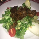 Als Vorspeisen orderten wir einmal die Gänseleber, gebraten, auf Feldsalat zu EUR 12,50. Eine üppige Portion mit knackigem Salat und perfekt gebratener Leber, dazu gut gewürzt.
