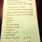 Die Karten wurden gereicht, kleine Klemmbretter aus Metall mit handgeschriebenen Seiten, die zusätzlich zu den Offerten der auch innen vorhandenen Schiefertafeln, auch die kompletten À la carte Optionen, inklusive der himmlisch klingenden Desserts verrieten.