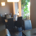 Bequeme Stühle, nach Aufforderung gab es auch Sitzkissen und Decke dazu, rustikale Tische.