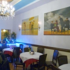 Diese beiden Räume waren für uns reserviert. Nachdem alle Platz genommen hatten, wurde der Platz doch sehr eng, denn die runden Tische lassen sich nicht gut für größere Gruppen zusammenstellen. „Gemütliche Atmosphäre“, wie auf der HP versprochen, geht nur, wenn nicht alle Stühle besetzt sind.