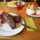 Ich bin ja kein Fan von Walnüssen,aber da sie leicht karamellisiert waren,schmeckten sie einfach fantastisch. Dazu dann der Käse mit der Honighaube. Wirklich ein Gedicht. Wenn man Ziegenkäse mag,sollte man diese Vorspeise dort unbedingt mal probieren.