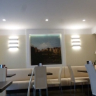Eine umfassende Umgestaltung und Renovierung der beiden kleinen Räume der Eisdiele wurde erst vor wenigen Monaten, rechtzeitig zur Saison 2015, beendet: Bestuhlung modern stylisch, aber bequem, die Wände hell gestrichen, geschmückt mit Kunstdrucken von Canaletto als Reminiszenz an die namensgebende Brücke in Venedig, mediterrane Leichtigkeit zum Wohlfühlen. Schön sitzt man auch auf der Terrasse mit Blick auf den Schafsplatz.
