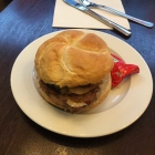 Es gibt hier von Schnitzel, über Braten, Würstl, Hähnchen, Leberkäse, Gemüse, Salate, alles quer durch. Wir entschieden uns für eine Steaksemmel für 2,50 € und eine Scheibe Wammerl mit Bratkartoffeln für 4,90 € Dieses wurde auf dem Bon als Menü 2 ausgewiesen.