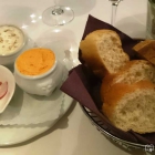 Es wird uns ein Gruß aus der Küche serviert. Eine rote Pestobutter und ein Frischkäse mit Röstzwiebeln (dachte zuerst es sei das obligatorische Schmalz), dazu frisches Baguette und knackige Radieschenscheiben. Beide Aufstriche klasse, die Kombination Frischkäse mit Röstzwiebeln hat allerdings gewonnen.