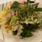 Für meinen allerliebsten Begleiter: Salmfilet vom Grill auf Pestonudeln und Hummersauce, bunter Salatteller € 18,50