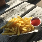 Die Pommes kamen in einer Keramikschale an den Tisch und der Ketschup nicht in der Tüte sondern hatte ein eigenes Schälchen, finden wir klasse. Der Ketschup war jetzt nicht die billig Variante. Wir wurden übrigens auch gefragt ob Ketschup oder Majo. Pommes schön knusprig frittiert, nicht fettig, innen schön weich und waren mit ausreichend Salz versorgt worden.