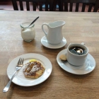 Pfannkuchen mit Marillenmus waren 2 sehr dünne Crepes auf ein Viertel zusammen gelegt.
