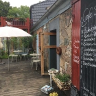 Das alte Haus ist sehr schön renoviert worden. Im Inneren wie Außen bestimmt ein Puppenstubenambiente das Café. die Einrichtung stammt vom Trödel. Kein Unterteller passt zur Tasse passt zum Kuchenteller. Draußen ein Garten mit vielen Tischen und Stühlen.