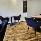 Das Ambiente überraschte durch einen Laminatboden in Parkett-Optik und sehr schönen Sitzgelegenheiten.
