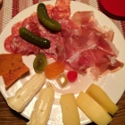 Von der Tafel suchten wir uns den bekannten Schmankerlteller (10,20€) und die Penne alla Casa (10,20€) aus. Wir sind begeistert wie immer. Vor uns liegen nur die besten Produkte. Der Parmesankäse wurde vor unseren Augen von einem Käselaib abgeschnitten.