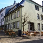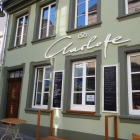Nach umfangreichen Umbau- und Renovierungsarbeiten, Innen und Außen, erstrahlt das historische Gebäude oberhalb des Rathauses am Schlossplatz in neuem Glanz. Die Fassade wurde in einem hellen Pistaziengrün, die Fenster weiß gestrichen, im Innenraum wurden die alten Eichendeckenbalken freigelegt, die Wände in warmen Braun – und Grüntönen getünchte, die Bestuhlung ist modern stylisch und noch wirkt das Lokal durch fehlende Deko etwas karg, zum Wohlfühlen fehlen vor allem noch ein paar Bilder an den Wänden.