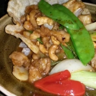 Vorspeisen: Sashimi Red Ninja (EUR 6,--) vom Lachs mit Gemüse als Wrap ein richtig guter "Appetit-Happen", der schon Einiges für den Hauptgang andeutete - lecker! Ich hatte eine Kokosmilchsuppe - namentlich Pure White - mit Hühnchen, Zitronengras und Galant. Leicht süßlich im Geschmack und auch aus meiner Sicht sehr lecker! (EUR 5,--). Die Hauptspeisen "Pretty Chick" (EUR 11) war Hühnchen mit Cashews und Wasserkastanien, dazu Gemüse und Reis. Sehr gut abgestimmt und eine ausreichende Portion (siehe Foto). Mein Hauptgericht hieß "Phanaeng" (EUR 12) und war ein Curry mit Hokkaidokürbis und gebratenen Rinderfiletstreifen. Die Kombination hörte sich sehr interessant an und schmeckte ebenfalls etwas süßlich. Das Fleisch war zart und auch reichlich vertreten. Der Kürbis lag am Boden des Tellers in größeren Stücken. Dazu wurde Reis serviert.