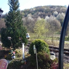 Der Biergarten mit unterschiedlicher Bestuhlung einfallsreich gestaltet. Für meinen Geschmack etwas viel Deko und "Durcheinander", ich mag eher die klare Linie. Für Kinder gibt es eigene Sitzmöbel. Schattenspender stehen reichlich zur Verfügung. Im Sommer werden diese hier sicherlich auch benötigt. Man sitzt wunderbar ruhig im Grünen, bis dann mal ein Zug vorbeigesaust kommt. Aber der gehört hier dazu und man wartet schon fast drauf (viel Zugverkehr ist hier nicht mehr unterwegs, ich glaube ca. 1 x pro Stunde 1 Zug je Richtung).
