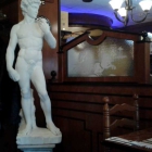 Typisch griechisch und folkloristisch, dunkle Holzvertäfelung und antike Statuen so weit das Auge reicht - nach einer kurzen Stippvisite in die puristische Bauhaus-Mensa wirkt das Ambiente des El Greco auf mich wie ein kleiner Kulturschock. Ich blende mein Umfeld dann teilweise aus und bin froh, dass ich ein paar Erinnerungsfotos schießen konnte. Wir haben etwas abseits in einer Nische im vorderen Gastraum gesessen, die Tische sind großzügig verteilt, ohne unmittelbaren Kontakt zum Nachbarn wirkt sich das dementsprechend positiv auf den Geräuschpegel aus.