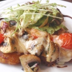 Die Tomatenstücke waren frisch, die Pilze leicht geröstet. Darüber war Käse verteilt, der überbacken worden war. Die Salatblätter waren auch noch knackig. Einige frische Sprossen gaben etwas Säure in das Gericht ab.