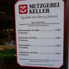 St. Wendel bietet mittags viele Einkehrmöglichkeiten, aber es muss für mich nicht immer ein Restaurant sein, in der Metzgerei Keller schau ich immer mal gern vorbei, entweder um mir was mitzunehmen, was ich zuhause zubereiten kann - da reicht das Angebot von der sehr leckeren Rindfleischsuppe mit Markklößchen zu 2,50 € bis zu vorgegarten Rinderrouladen oder Sauerbraten mit Soße, zwei Portionen zu 7,90 € - oder wie heute das Tagesgericht im kleinen Imbiss zu essen.