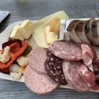 Die Karte beschrieb das mit Hausmacher Wurst, Käse, reich garniert mit Bäckerbrot und Quittenschnaps. Den Schnaps hatte ich abbestellt eingedenk eines denkwürdigen vorherigen Abends in Oberwesel mit einer umfangreichen Weinverkostung bei Lanius Knab. Hätte ich vielleicht doch nicht tun sollen angesichts dieses Holzbretts voll mit leckeren Wurst und Käse, die gefühlt einen ganzen Vierer-Tisch gesättigt hätte. Letztlich schaffte ich nicht alles, dass sehr gute Sauerteigbrot wurde natürlich gegessen, aber ein wenig vom Käse und der Wurst gingen zurück, ich konnte nicht mehr essen. Und es lagen ja noch ein paar Kilometer bis St. Goar vor uns. Weil wir so satt waren noch ein Kaffee aus der hauseigenen Röstung.